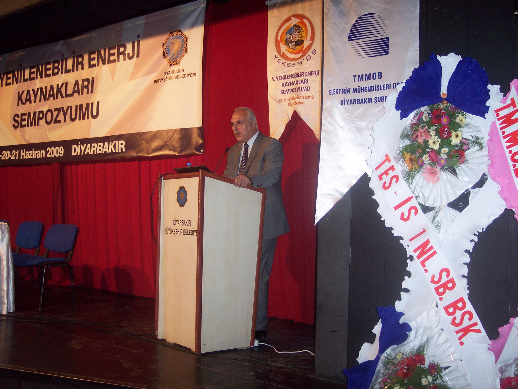 Sempozyumun açılışında, EMO Diyarbakır Şube Yönetim Kurulu Başkanı Sayın Nedim TÜZÜN‘ün "Mühendislik mesleğinin doğaya, çevreye ve en önemlisi insana kıymet veren bir meslek olduğunu esas alarak yürütülen bu çalışmalarla meslek alanlarımızdaki gelişme ve yenilikleri paylaşmakta, meslektaşlarımızın bilgi ve becerilerinin gelişimine katkı sunarak, sorunlarını tespit etmekte ve çözüm önerileri geliştirmekte olduklarını, bu yüzden insanlığın ihtiyacı olan enerjinin temini konusundaki kaynakların türü ve kullanım şeklinin çok önem arz etmeye başladığı bu dönemde, temiz, tükenmeyen, doğaya ve çevreye uyumlu yöntemlerle küresel iklim değişikliğinin yavaşlatılabileceği bir yöntem olan YENİLENEBİLİR ENERJİ KAYNAKLARI‘ nın kullanımını " irdeledi.Şube Başkanımız Nedim TÜZÜN konuşmasının devamında Hasankeyf‘e ilişkin şu hususlara dikkat çekti.