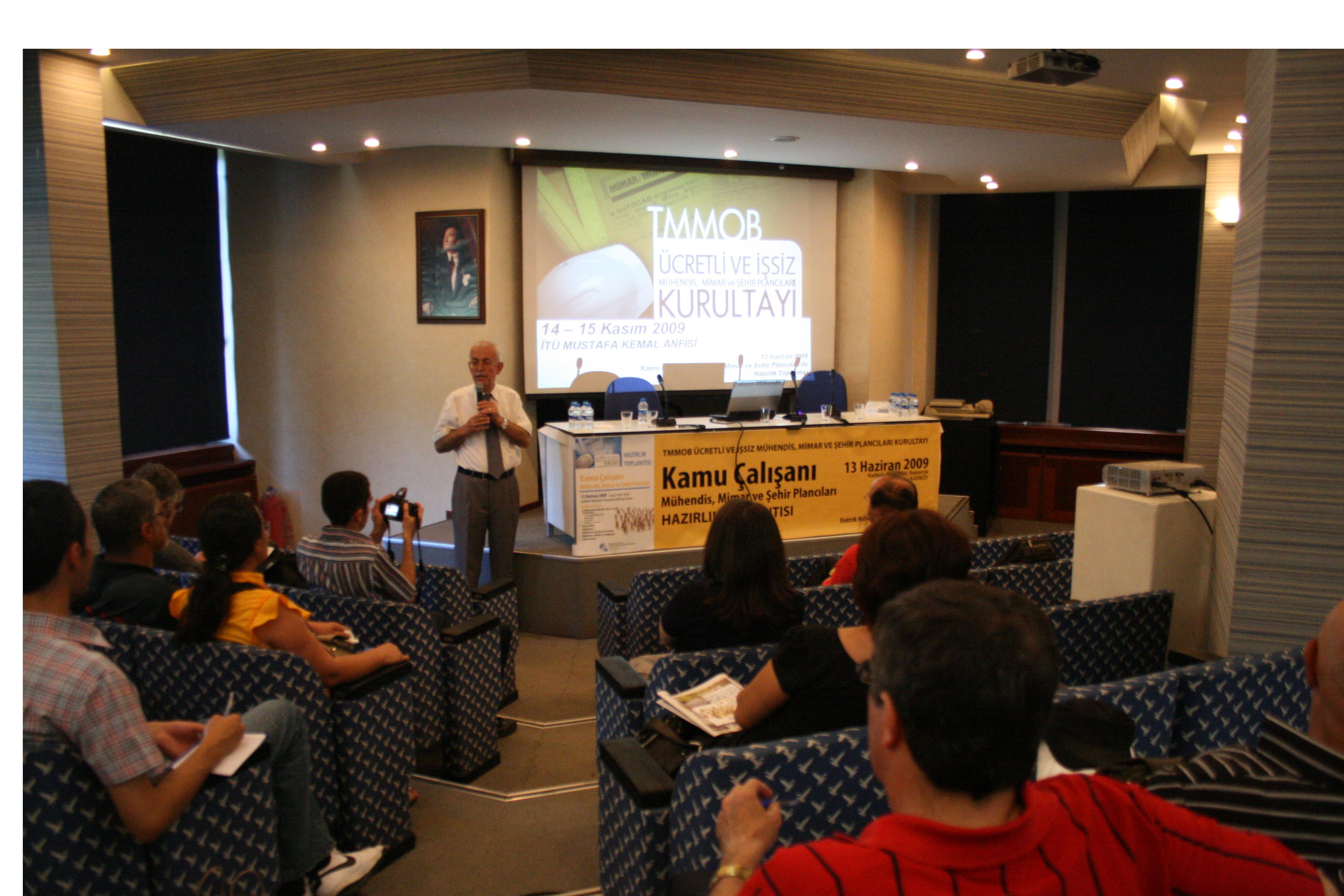 TMMOB Ücretli ve İşsiz Mühendis, Mimar, Şehir Plancıları Kurultayı kapsamında gerçekleştirilmesi kararı alınan dokuz yerel kurultaydan biri olan İstanbul Yerel Kurultayı hazırlık toplantılarının ikincisi Kamu Çalışanı Mühendis, Mimar, Şehir Plancıları ile 13 Haziran 2009 saat:14.00-18.00 Kadıköy Belediye Başkanlığı Brifing salonunda forum şeklinde gerçekleştirildi. Toplantıya Belediyeler, Bayındırlık ve İskan Müdürlüğü, İSKİ, Karayolları, Bedaş, Odalardan çalışanlar ve Kurultay Yürütme Kurulu üyeleri ile birlikte toplam 64 kişi katıldı. Forumdan başlıklar Özelleştirme ile çalışanların hak kayıplarına uğradığı, özlük haklarını savunanların sürgüne gönderildiği, işlevsizleştirildiği, yasalar ile hak arayanların unvanlarının geri alındığı davaların yıllarca sürdüğü belirtildi. Liyakatin siyasi iradeye göre şekillendiği, teknikerlerin mühendislerin üzerine şef olarak getirildiği anlatıldı. Taşeronluk sistemine geçişle mesleki disipline uygun çalışılamadığı, sözleşmelerin 364 gün üzerinden yapılarak yasal hakların ve güvencenin yok edildiği, fazla mesai ücreti ödenmediği, maaş ve SSK prim ödemelerinin aksatıldığı, düşük ücretlerle çalışmak zorunda bırakıldıkları vurgulandı. Karar Önerileri Örgütlenmenin; TMMOB ve KESK üzerinde olması gerektiğine, Meslek Odalarının kamu kurumlarında temsilciliklerinin oluşturulmasının yararlı olacağına, Karar verildi.
