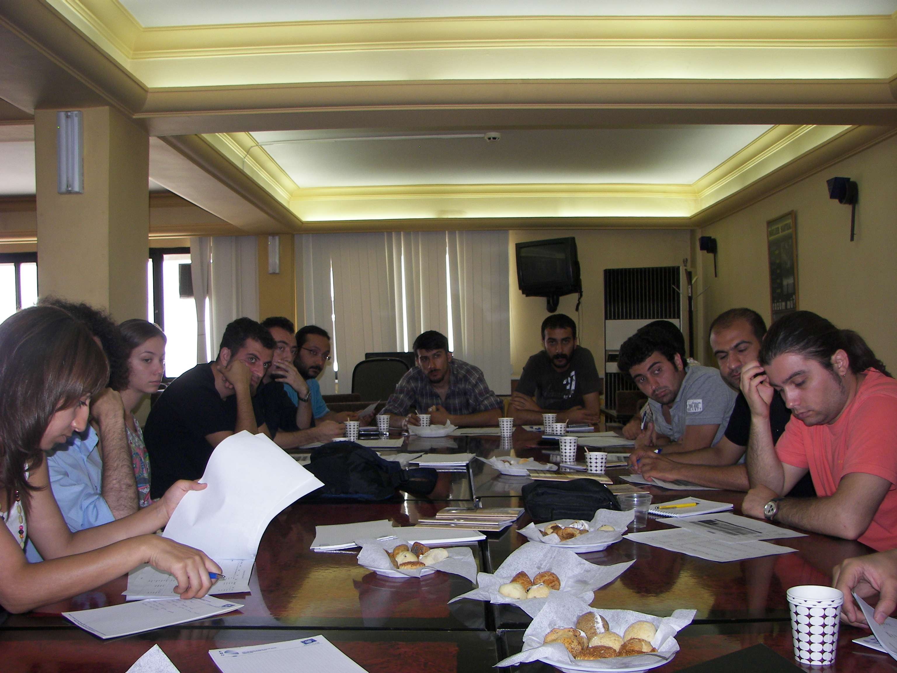 Şubemizin çalışma dönemi içerisinde TMMOB, EMO ve EMO-Genç örgütlülüğünün geliştirilmesine yönelik 26 Ağustos-3 Eylül 2009 tarihleri arasında gerçekleştireceği EMO-Genç Yaz Eğitim Kampı‘nın dördüncü Danışma Kurulu toplantısı 18 Temmuz 2009 tarihinde Şubemizde düzenlendi. Şubemiz adına YK Başkan Yardımcısı Hacer Şekerci, Sayman Üye Ulaş Birgör, YK üyesi Meltem Yıldırım, YK Yedek Üyesi Tahir Emre Kalaycı ile Şube Teknik Görevlisi Barış Aydın katıldı. Danışma Kurulu‘na ilişkin Şubeleri temsilen EMO İstanbul Şube YK Başkan Yardımcısı Kurtuluş Kaya, EMO Ankara Şube YK Yazmanı Ömürhan Soysal, YK Yedek Üyesi Taylan Özgür Yıldırım‘ın yanı sıra İzmir, Ankara, Diyarbakır, Bursa, Kocaeli, Adana, Mersin, Samsun Şubeleri EMO-Genç temsilcileri toplantıya katıldılar. Toplantıda Hacer Şekerci‘nin açılış yapmasından sonra Barış Aydın tarafından daha önce alınan kararlar ve yaz kampı çalışmaları hakkında bilgi verildi. Kamp alanı olarak seçilen Seferihisar DEÜ Sosyal Tesislerinin, etkinliğin gerçekleştirilmesi için gerekli alt yapısı, donanımları ve olanakları hakkında kapsamlı bilgi verildi. Yürütme Kurulu ve Danışma Kurulu üyeleri arasında sağlıklı ve hızlı iletişim sağlanması amacıyla EMO portalı üzerinde e-posta grubu oluşturulduğu, bu grup üzerinden iletişimin kurulacağı ifade edildi. Toplantıda; Yaz Eğitim Kampına şubeleri temsilen katılacak EMO-Genç isimlerinin başvuru formlarında göze çarpan eksiklikler ile şubelerin görev aldığı atölye çalışmaları, panel, forum, söyleşi gibi etkinliklerin içerik, konuşmacı isimleri vb. konularda oluşturulan etkinlik bilgi formlarının İzmir Şube‘ye iletilmesi istendi. Gece etkinliği, dinletiler, bel-gesel/yönetmen söyleşisi konularında belirlenen ve alternatif olarak önerilen isimlerle görüşülmesi, yeni isim önerileri dile getirildi. Otobüs ulaşım noktalarının ve saatleri ve 28 Ağustos 2009 tarihinde gerçekleştirilmesi planlanan Efes Gezisi hakkında yapılan çalışmalarla ilgili bilgi verilmesinin ardından toplantı sona erdi.