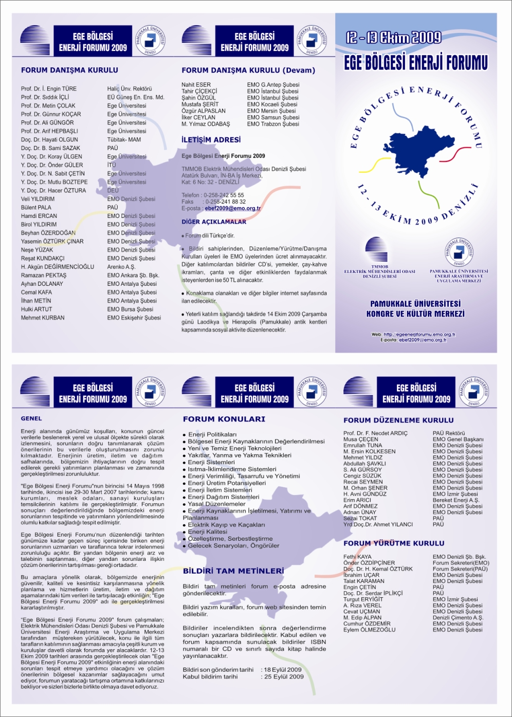 Forum broşürümüz ektedir. Bildiriler için email adresi ebef2009@emo.org.tr dir.