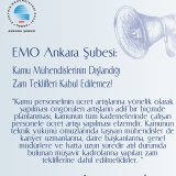 | EMO Ankara Şubesi tarafından 3 Aralık 2025 tarihinde yapılan “Kamu Mühendislerinin Dışlandığı Zam Teklifleri Kabul Edilemez!” başlıklı açıklamada, “Kamunun belli kadrolarına yönelik olarak yapılması planlanan ücret artışı, yıllardır derinleşen ücret adaletsizliğini daha da büyütmekte, iş barışını bozmakta ve mühendislik mesleğinin önemini, değerini yok sayan kabul edilemez bir tablo ortaya çıkarmaktadır.” denildi. Açıklamanın tam metni haberimizin devamındadır. |