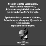 | 14 Nisan 2026 Salı günü Şanlıurfa İli`nin Siverek ilçesindeki bir meslek lisesinde yaşananlardan bir gün sonra 15 Nisan 2026 tarihinde Kahramanmaraş Onikişubat ilçesindeki Ayser Çalık Ortaokulu`nda yaşanan ve ülke tarihimizin en kara günlerinden biri olan okul saldırısı karşısında derin bir yas içindeyiz. |