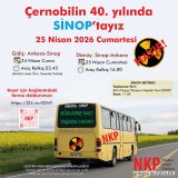 | 26 Nisan 1986 yılında gerçekleşen Çernobil Nükleer Santral Kazasının 40. Yılında, Sinop’ta nükleer karşıtı miting düzenleniyor. 25 Nisan 2026 (Cumartesi) tarihinde gerçekleştirilecek olan miting için Nükleer Karşıtı Platform (NKP) Ankara Bileşenleri tarafından araç kaldırılacaktır. Araçlarda yer almak için haberimizin devamındaki bağlantıdan kayıt yaptırmak gerekmektedir. Miting ve araç kalkış saatleri ile ilgili ayrıntılı bilgi haberimizin devamındadır. |
