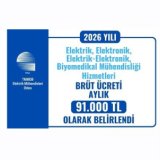2026 YILI ELEKTRİK, ELEKTRONİK, ELEKTRİK-ELEKTRONİK, BİYOMEDİKAL MÜHENDİSLİĞİ HİZMETLERİ BRÜT ÜCRETİ AYLIK 91.000 TL OLARAK BELİRLENDİ 24.12.2025 |