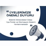 | Elektrik Mühendisleri Odası Üye Portalı ve Otomasyon Sistemi gelişen teknolojinin ve üyelerimizin güncel ihtiyaçlarına daha iyi ve daha hızlı cevap verebilmek için yenilenmektedir. Bir süredir devam eden yenileme çalışmalarında sona gelinmiş ve 13 Ekim 2025 tarihi itibariyle planlı bir altyapı taşıması başlatılmıştır. Bir hafta süreyle üyelerimizin Portal`a erişimi mümkün olmayacaktır. İhtiyaç duyulan tüm işlemler şubelerimizden ve bağlı birimlerimizden gerçekleştirilebilecektir. Yeni portalın duyurusu en kısa sürede sizlere ulaştırılacaktır. Bu teknik çalışma süresince anlayış göstereceğinizi umuyor, olası aksaklıklar için özür diliyoruz. |