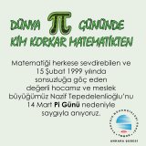 | Matematiği herkese sevdirebilen ve 15 Şubat 1999 yılında sonsuzluğa göç eden değerli hocamız ve meslek büyüğümüz Nazif Tepedelenlioğlu’nu 14 Mart Pi Günü nedeniyle saygıyla anıyoruz. |