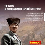 | Emperyalist işgale karşı halkın örgütlü direnişiyle yazılan bu büyük mücadelenin 111. yılında, Çanakkale Zaferi’ni selamlıyoruz. TMMOB olarak, bağımsızlık, eşitlik ve özgürlük mücadelesinin tarihsel mirasına sahip çıkmaya devam edeceğiz. |