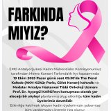 | Şubemiz Kadın Mühendisler Komisyonumuz tarafından Meme Kanseri Farkındalık Ayı kapsamında 19 Ekim 2025 Pazar saat 09.30da The Pond Kafede-AKM Kültür Parkı, Gölet Kenarı- kahvaltı ve Tıbbi Onkoloji Uzmanı Prof.Dr.Ayşegül KARGI` nın yer alacağı söyleşi planlanmıştır. Etkinliğe katılmak isteyen kadın üyelerimizin şubemize isim yazdırmaları rica olunur. |