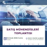 | Elektrik Mühendisleri Odası (EMO) İzmir Şubesi, 16 Ocak 2026 Cuma günü pazarlama faaliyetlerinde görev alan üyelerinin katılımıyla `Satış Mühendisleri Toplantısı` düzenleyecektir. EMO İzmir Şubesi Hizmet ve Eğitim Merkezi`nde saat 18.00`de başlayacak toplantıya alanda hizmet üreten tüm üyelerimiz davetlidir. |