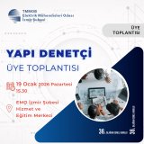 | Elektrik Mühendisleri Odası (EMO) İzmir Şubesi, 19 Ocak 2026 Pazartesi günü Yapı Denetçi Üye Toplantısı düzenleyecektir. EMO İzmir Şubesi Hizmet ve Eğitim Merkezi`nde saat 15.30`da başlayacak toplantıya alanda hizmet üreten tüm üyelerimiz davetlidir. |