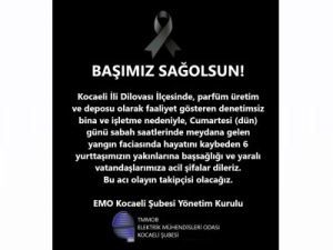 Kocaeli İli Dilovası İlçesinde, parfüm üretim ve deposu olarak faaliyet gösteren denetimsiz bina ve işletme nedeniyle, Cumartesi (dün) günü sabah saatlerinde meydana gelen yangın faciasında hayatını kaybeden 6 yurttaşımızın yakınlarına başsağlığı ve yaralı vatandaşlarımıza acil şifalar dileriz. Bu acı olayın takipçisi olacağız.