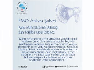 EMO Ankara Şubesi tarafından 3 Aralık 2025 tarihinde yapılan “Kamu Mühendislerinin Dışlandığı Zam Teklifleri Kabul Edilemez!” başlıklı açıklamada, “Kamunun belli kadrolarına yönelik olarak yapılması planlanan ücret artışı, yıllardır derinleşen ücret adaletsizliğini daha da büyütmekte, iş barışını bozmakta ve mühendislik mesleğinin önemini, değerini yok sayan kabul edilemez bir tablo ortaya çıkarmaktadır.” denildi. Açıklamanın tam metni haberimizin devamındadır.