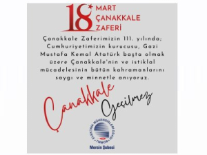 18 MART ÇANAKKALE ŞEHİTLERİNİ ANMA GÜNÜ18 Mart, Çanakkale Savaşı’nda emperyalist saldırganlığa karşı yurdumuzu savunanların destansı direnişinin yıldönümüdür. 111. yılında, başta Gazi Mustafa Kemal Atatürk olmak üzere bağımsızlık uğruna mücadele edenleri ve yaşamını yitirenleri saygıyla anıyor; savaşsız, sömürüsüz, barış ve kardeşlik içinde bir dünya özlemimizi bir kez daha dile getiriyoruz.0